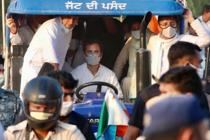 लगातार कांग्रेस और विपक्षी पार्टियों की ओर से कृषि सुधार अधिनियम का विरोध किया जा रहा है। अब इसके विरोध में कांग्रेस के युवा नेता राहुल गांधी खुद जमीन पर उतर चुके हैं. राहुल गांधी ने ट्रैक्टर रैली के आयोजन में भाग लिया और ट्रैक्टर चलाकर हरियाणा जाने की मांग पर अड़ गए। राहुल गांधी के इस काफिले को हरियाणा पुलिस ने रोका और कहा कि सबसे ज्यादा कार्यकर्ताओं को ले जाने की परमिशन नहीं है। ऐसे में पुलिस ने रैली को रोक दिया यहां पुलिस और कार्यकर्ताओं में धक्का-मुक्की हुई और राहुल गांधी धरने पर बैठ गए। उसके बाद राहुल गांधी ने कहा, “वे हिलेंगे नहीं इंतजार करेंगे, 1 घंटे, 5 घंटे, 24 घंटे, 100 घंटे, 1000 घंटे, 5000 घंटे करेंगे !.. कुछ देर बाद राहुल को 100 कार्यकर्ताओं के साथ हरियाणा में एंट्री दे दी गई। ”