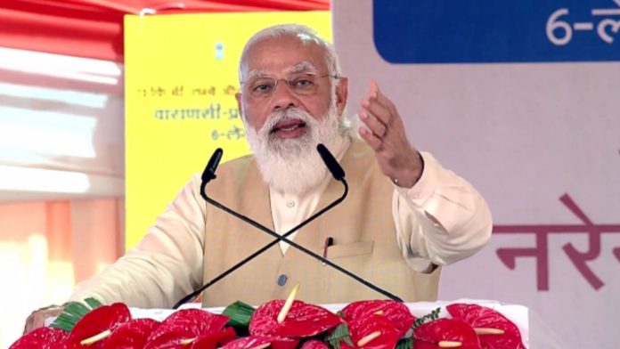 Varanasi: Prime Minister Narendra Modi inaugurates six-lane widening project of Handia (Prayagraj)-Rajatalab (Varanasi) section of National Highway 19 pic.twitter.com/vrmW0IYvGp